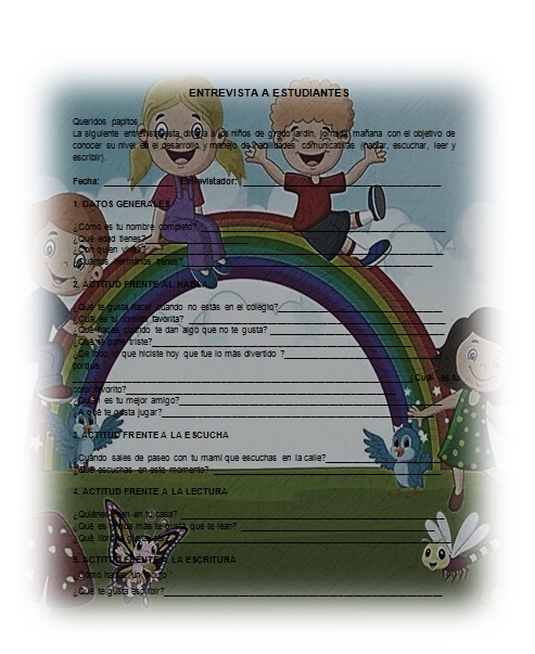Se realizaron dos entrevistas a los estudiantes, una al inicio del proyecto y la otra al finalizar, también se realizó una entrevista a los padres de familia.
